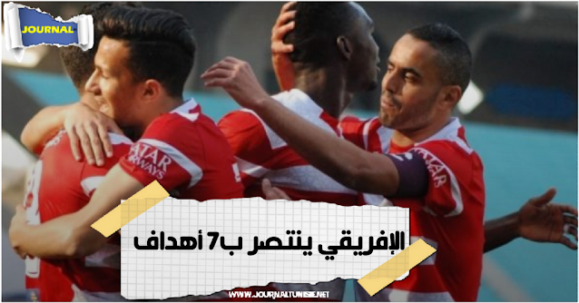 حقّق النادي الإفريقي فوزا عريضا، اليوم الأحد، ضدّ نادي كيبانغا الزنجيباري بسباعية نظيفة في المباراة التي احتضنها ملعب حمادي العقربي برادس، ليتأهل بذلك إلى الدور القادم من مسابقة كأس الاتحاد الإفريقي